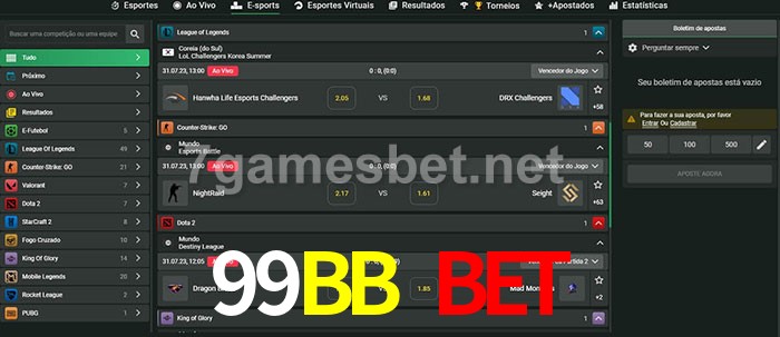 O 99BB bet oferece uma grande seleção de opções de apostas em e-sports com probabilidades competitivas
